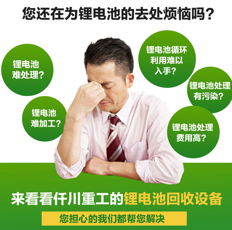 回收處理廢舊鋰電池的鋰電池回收處理設(shè)備在行業(yè)中也變身成為了“聚寶盆”。鋰電池回收處理設(shè)備整個(gè)生產(chǎn)線工藝操作簡(jiǎn)單易懂,設(shè)備性能工作效率運(yùn)作快,對(duì)于處理物料的回收純凈度高,同時(shí),對(duì)于環(huán)境不會(huì)產(chǎn)生二次污染,有利用保護(hù)環(huán)境。有意選擇廢舊鋰電池回收處理設(shè)備,可以咨詢仟川重工為您提供詳細(xì)設(shè)備工藝和配置方案以及參數(shù)和報(bào)價(jià)詳情。
